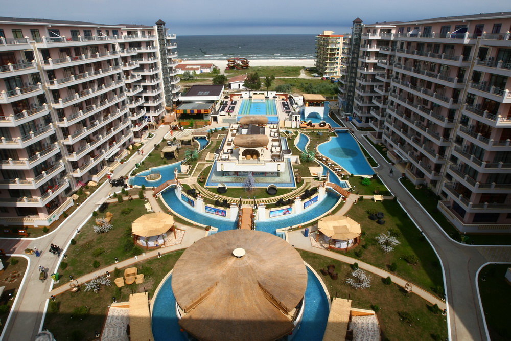 Am vazut saptamana trecuta reclama intr-o revista si apoi am cautat pe internet mai multe despre acest loc. Daca si plaja privata arata la fel de bine, nu vad de ce nu ar concura, de la egal la egal, cu resorturi similare din alte tari. Din cate stiu, nici in Turcia sau Egipt, turismul practicat in aceste conditii (all-inclusive) nu difera prea mult: stai 10 zile in acelasi loc si cam atat. Poate doar ca sunt ridicate intr-un perimetru mult mai mare. Dar nimeni nu pleaca sa se plimbe in afara acestuia. Si cred ca la noi e mai sigur. E putin mai ciudat cu mesele servite: micul dejun si pranzul… Dar la cum arata camerele (apartamente, de fapt), am cam putea inchide ochii si sa platim extra pentru cina. (Sursa foto: aici.)